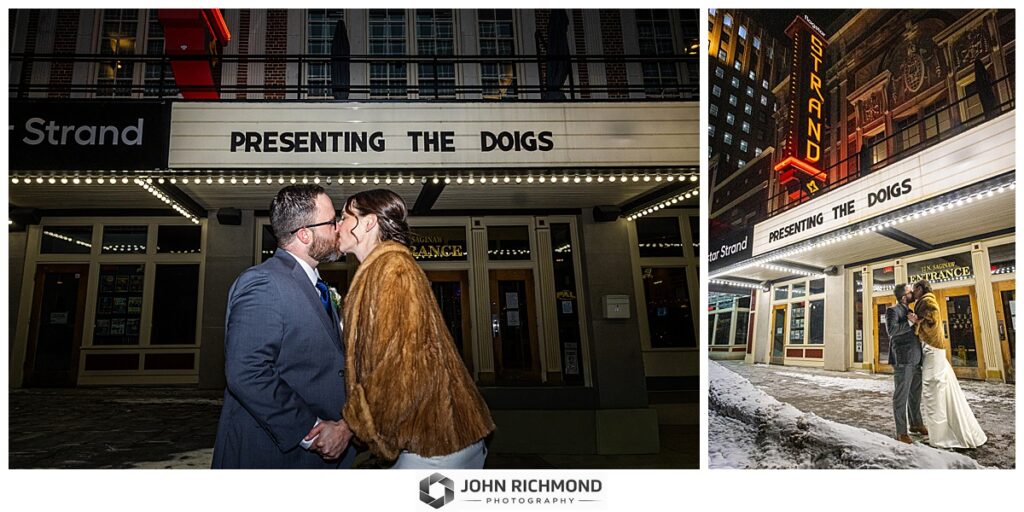 Before I left for the evening, we stepped back outside near the theater one last time—where Carolyn surprised Steven with an incredible final touch: their names glowing on the Strand Theatre marquee. It was the perfect ending to a day filled with thoughtful surprises and meaningful moments.