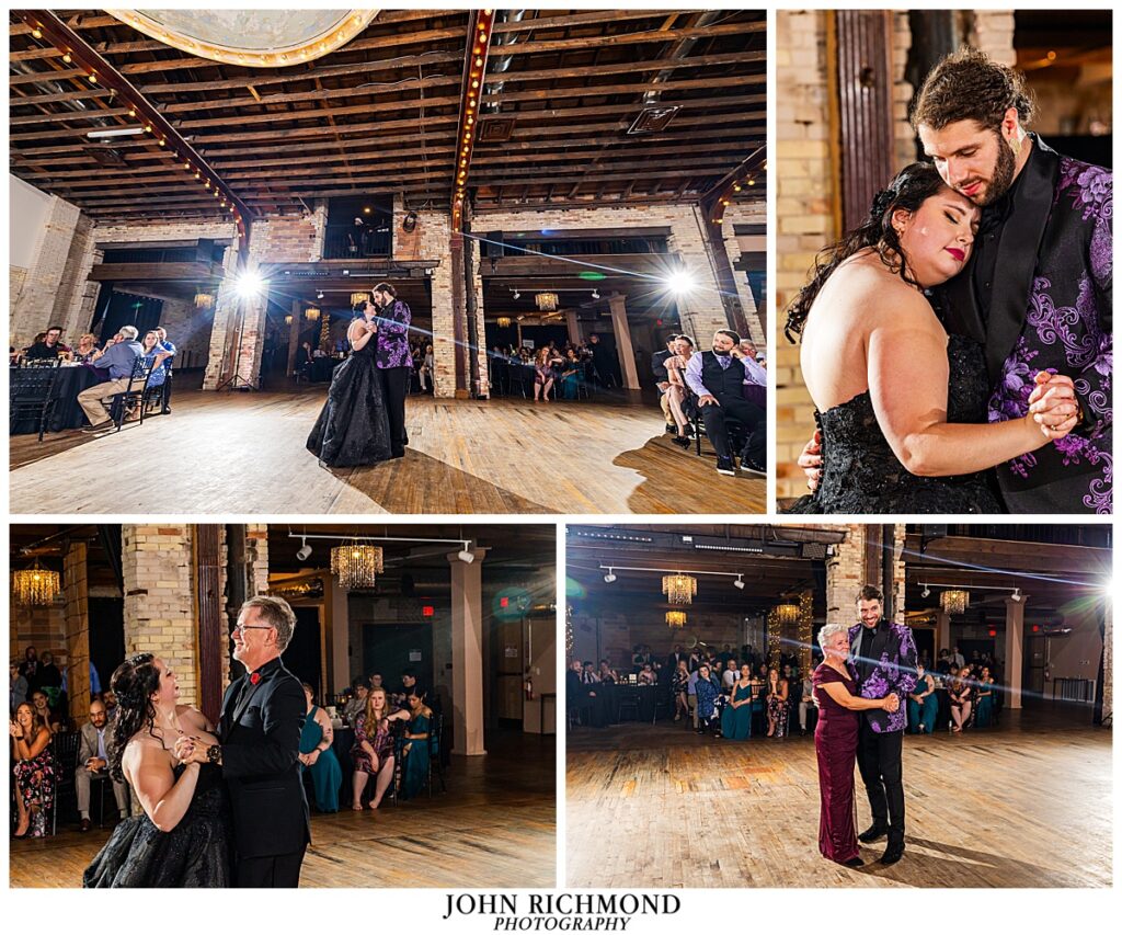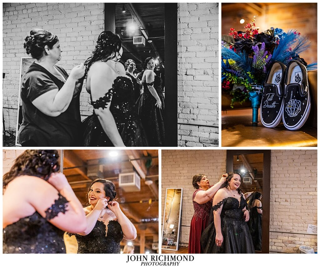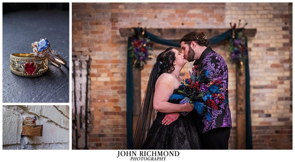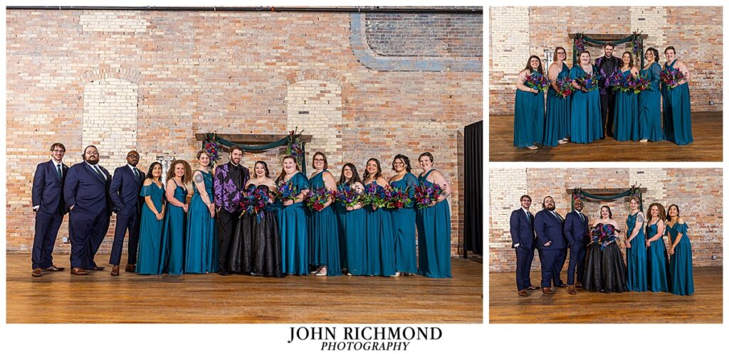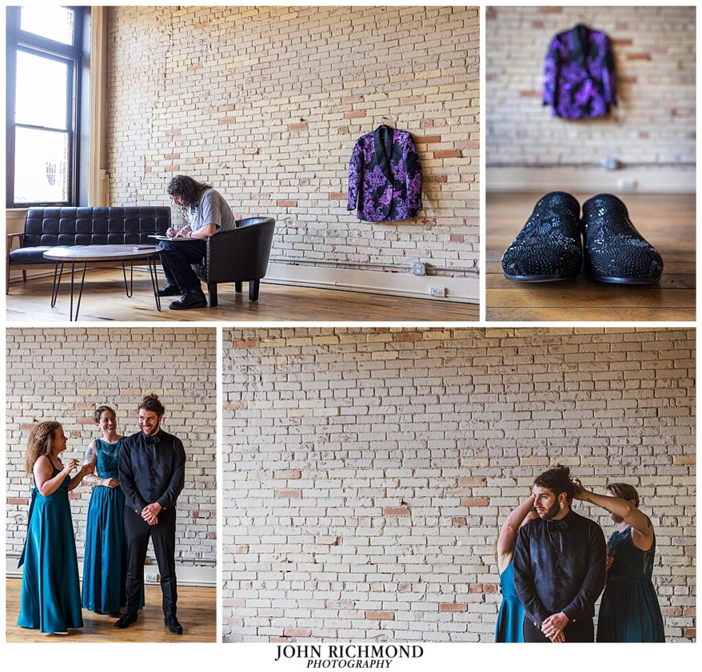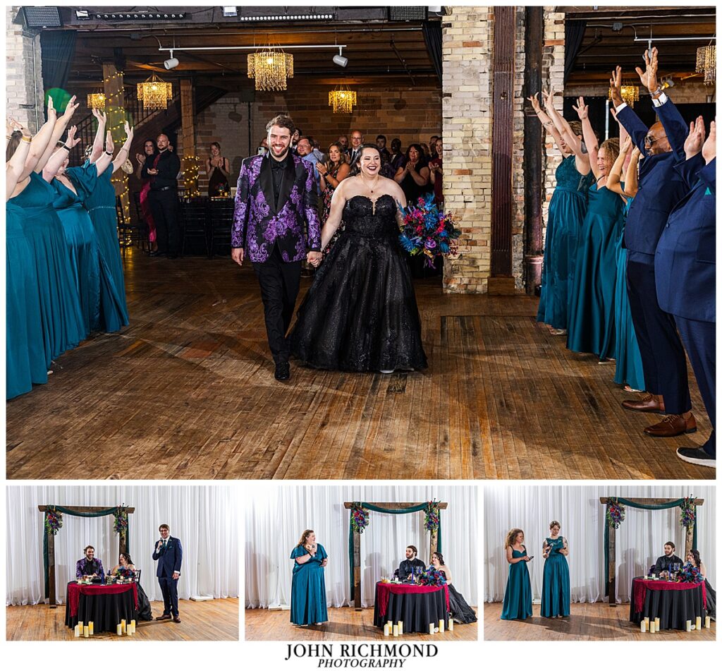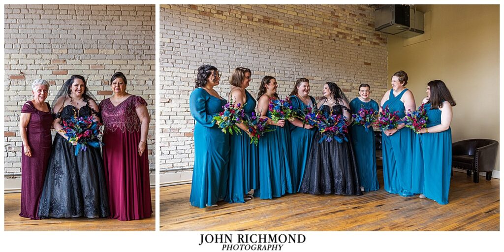 One of my favorite parts of the day was Savannah’s bold and stunning choice of a black wedding dress. She looked absolutely incredible and brought such a modern, elegant twist to the day. Patrick matched her style perfectly with his black suit coat accented in purple—a combination that made them stand out beautifully against the character of the Harris Building.