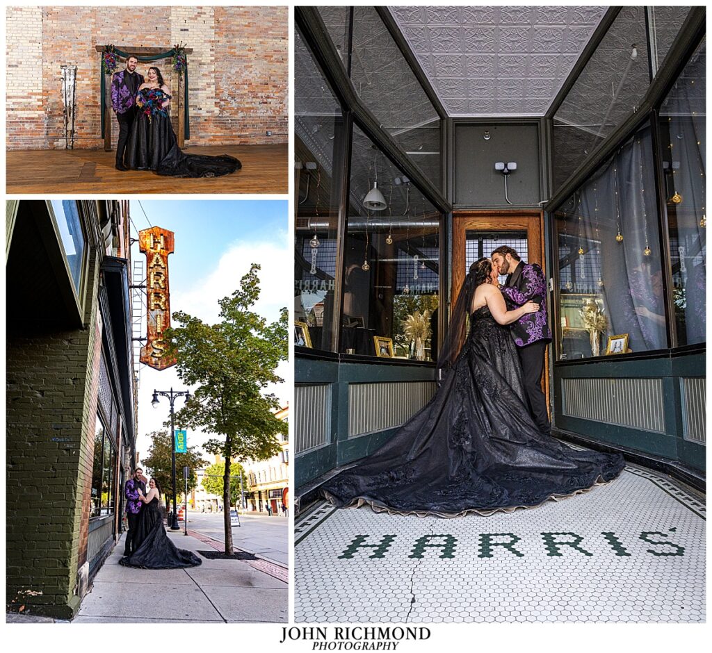 After the ceremony, we gathered for family photos before heading outside to capture some portraits with the Harris Building’s iconic signage. It was the perfect backdrop to show off both their unique style and the historic charm of downtown Grand Rapids.